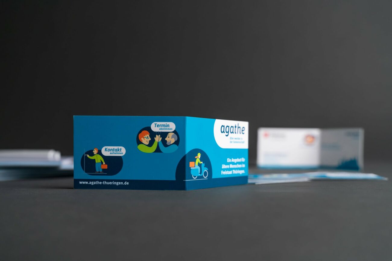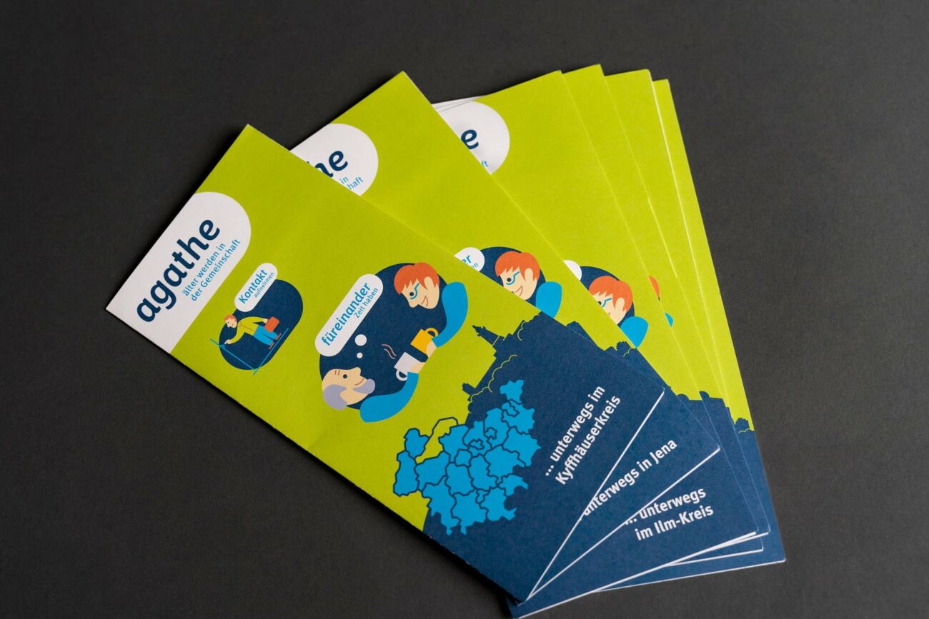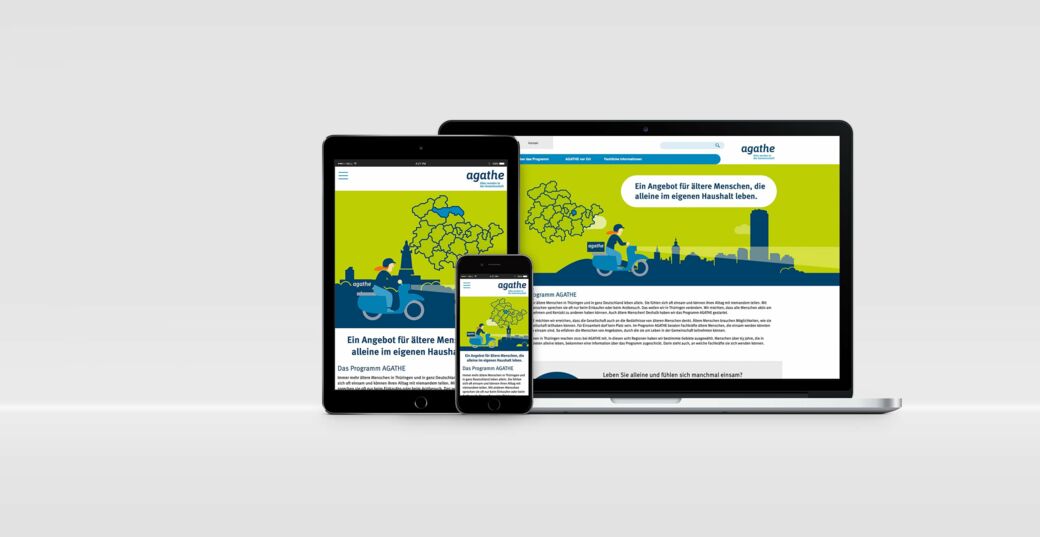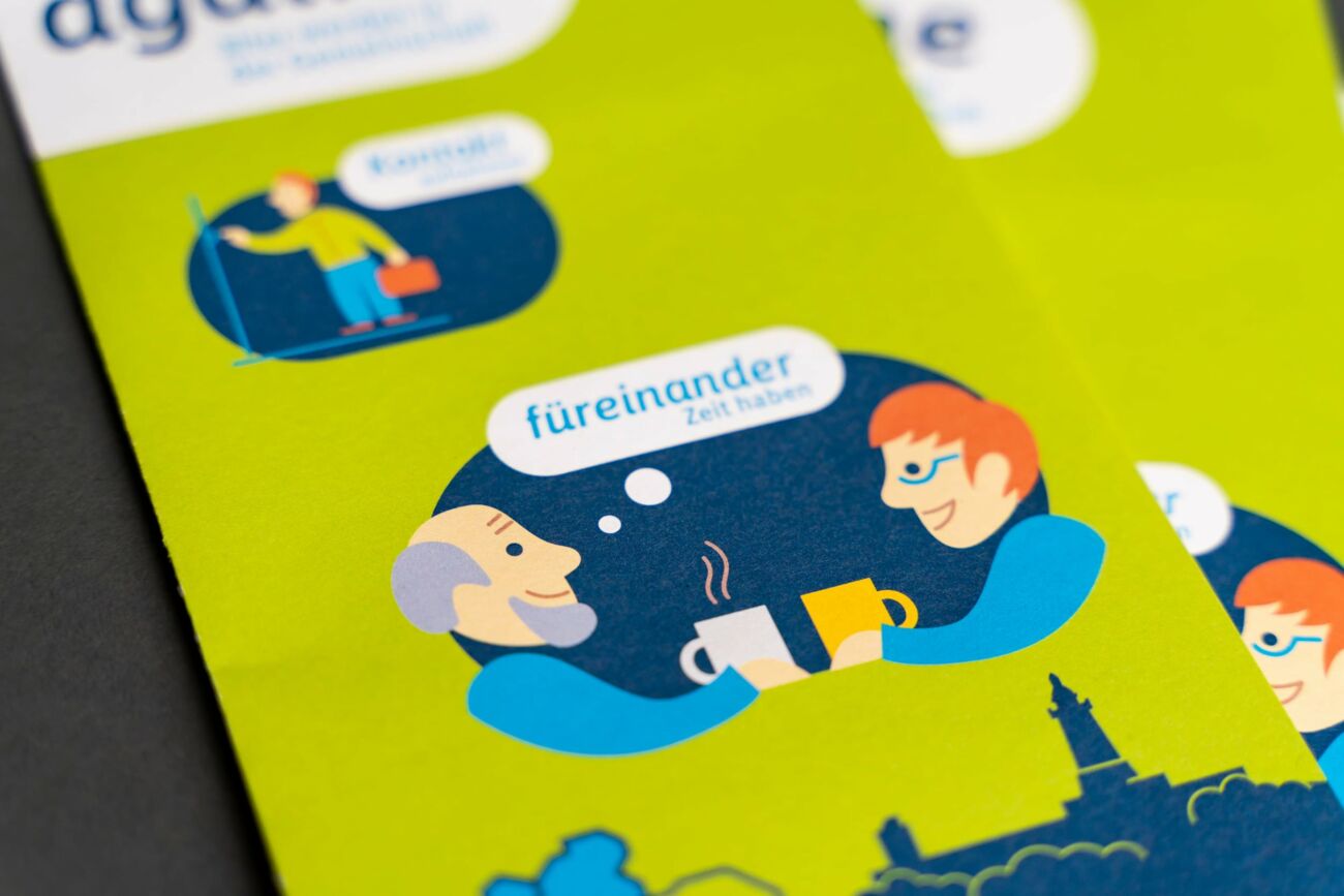 donner+friends entwickelten für das TMASGFF ein Corporate Design und entsprechend den ministeriellen Vorgaben ein Konzept für die visuelle Kommunikation und Öffentlichkeitsarbeit. Im Mittelpunkt der Konzeption stehen multimedial einsetzbare Illustrationen, welche die Protagonisten der Kampagne, von den AGATHE-Beraterinnen und Beratern bis zu den älteren Menschen darstellen. Diese Illustrationen sind modular einsetzbar.