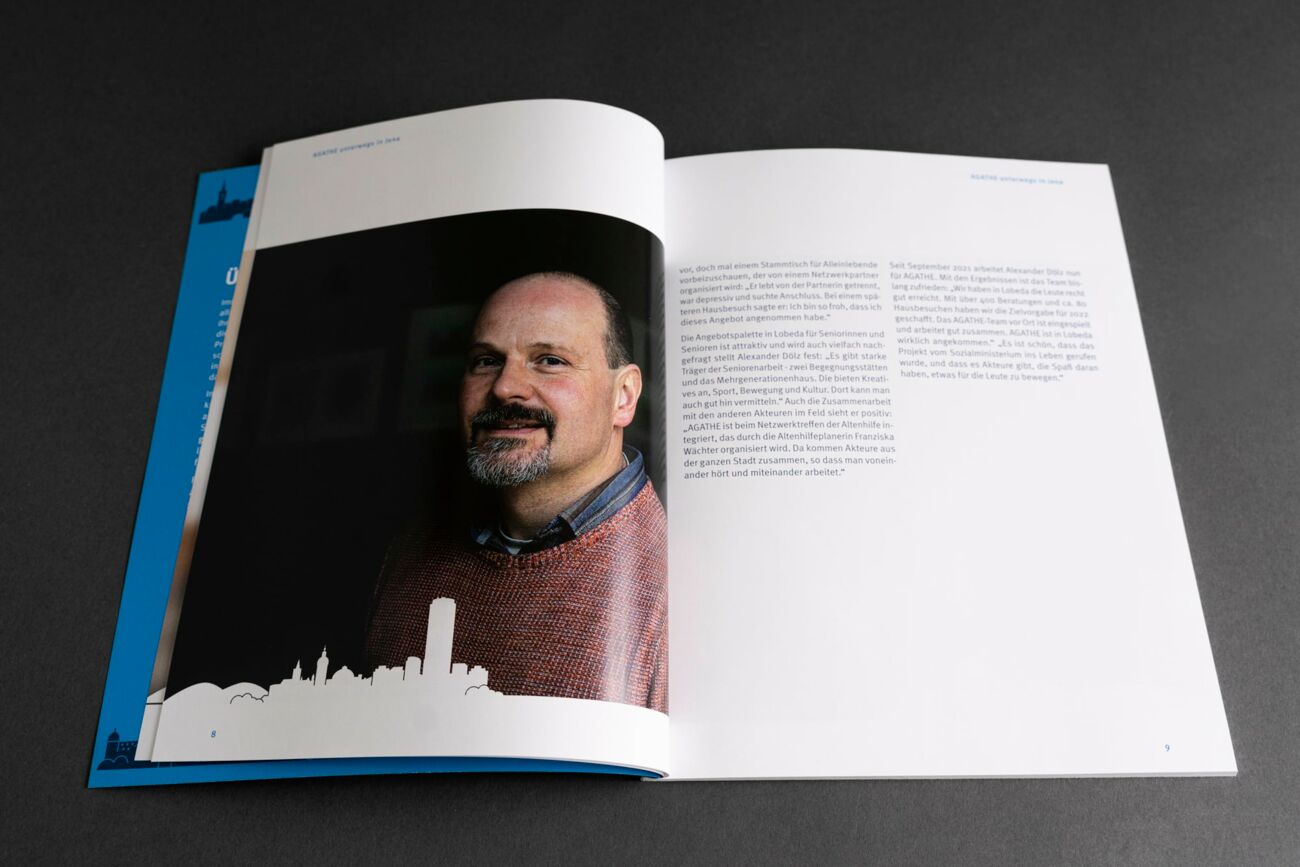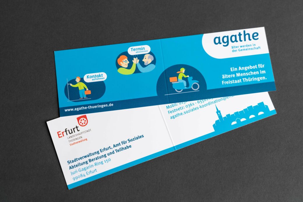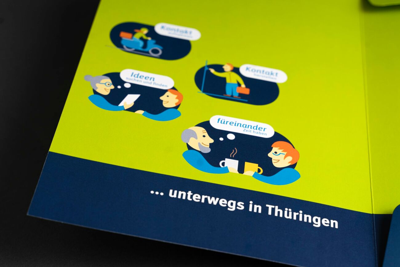 donner+friends entwickelten für das TMASGFF ein Corporate Design und entsprechend den ministeriellen Vorgaben ein Konzept für die visuelle Kommunikation und Öffentlichkeitsarbeit. Im Mittelpunkt der Konzeption stehen multimedial einsetzbare Illustrationen, welche die Protagonisten der Kampagne, von den AGATHE-Beraterinnen und Beratern bis zu den älteren Menschen darstellen. Diese Illustrationen sind modular einsetzbar.