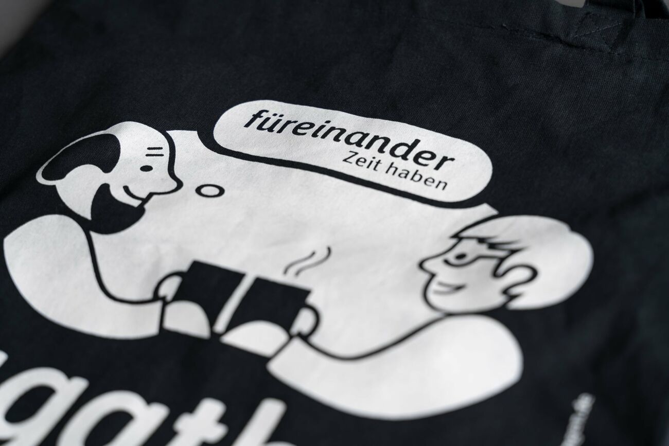 Die AGATHE-Tasche leistet gute Dienste beim Einkauf. So wird sie ebenfalls Anlass für einen kleinen AGATHE-Erfahrungsaustausch im Einkaufszentrum.