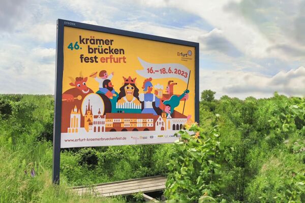 In diesem Jahr gibt es neben Neuerungen in der Programmplanung, mit Fokus auf eine jüngere Zielgruppe auch einen neuen grafischen Auftritt des Festes. Ernestine Donnerberg von donner&friends und Lena Haubner aus Weimar konnten sich mit ihren Ideen im Rahmen eines Pitchs durchsetzen.