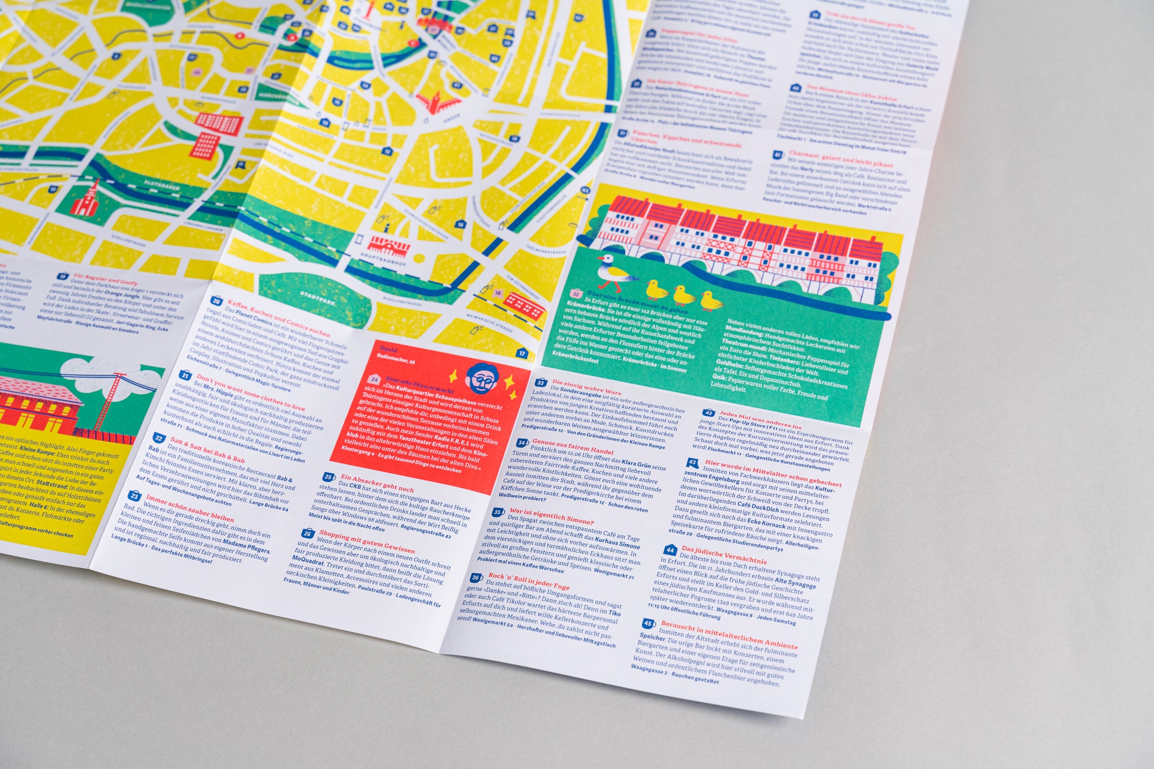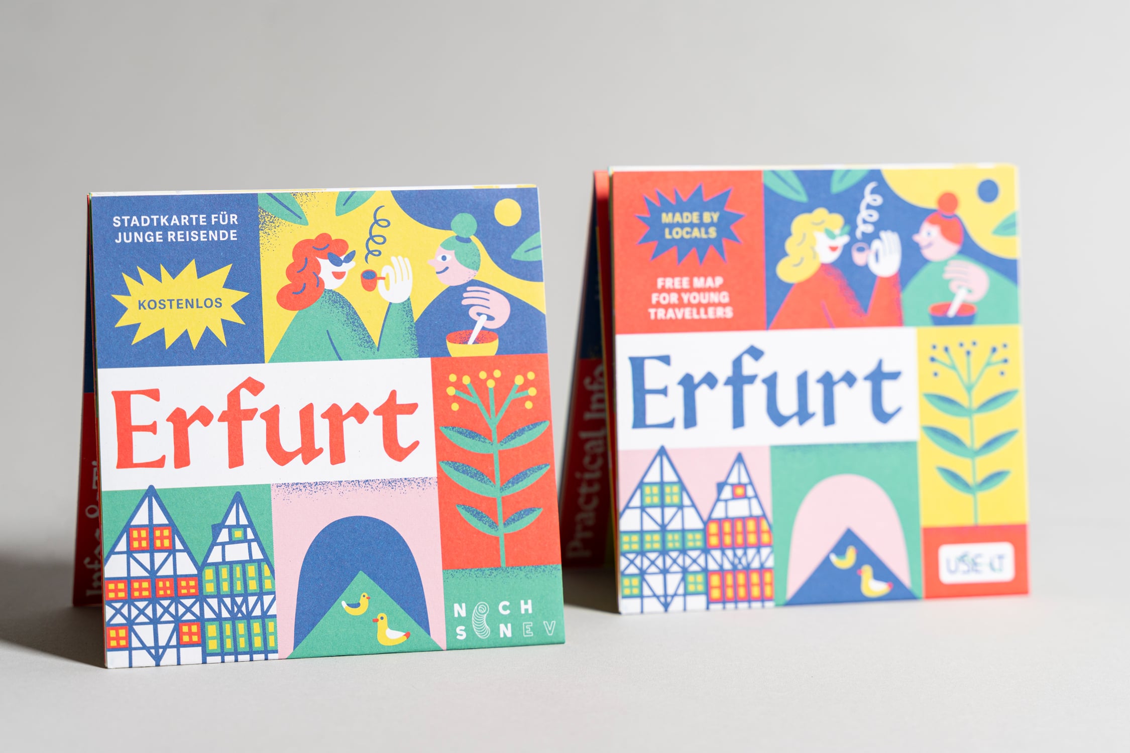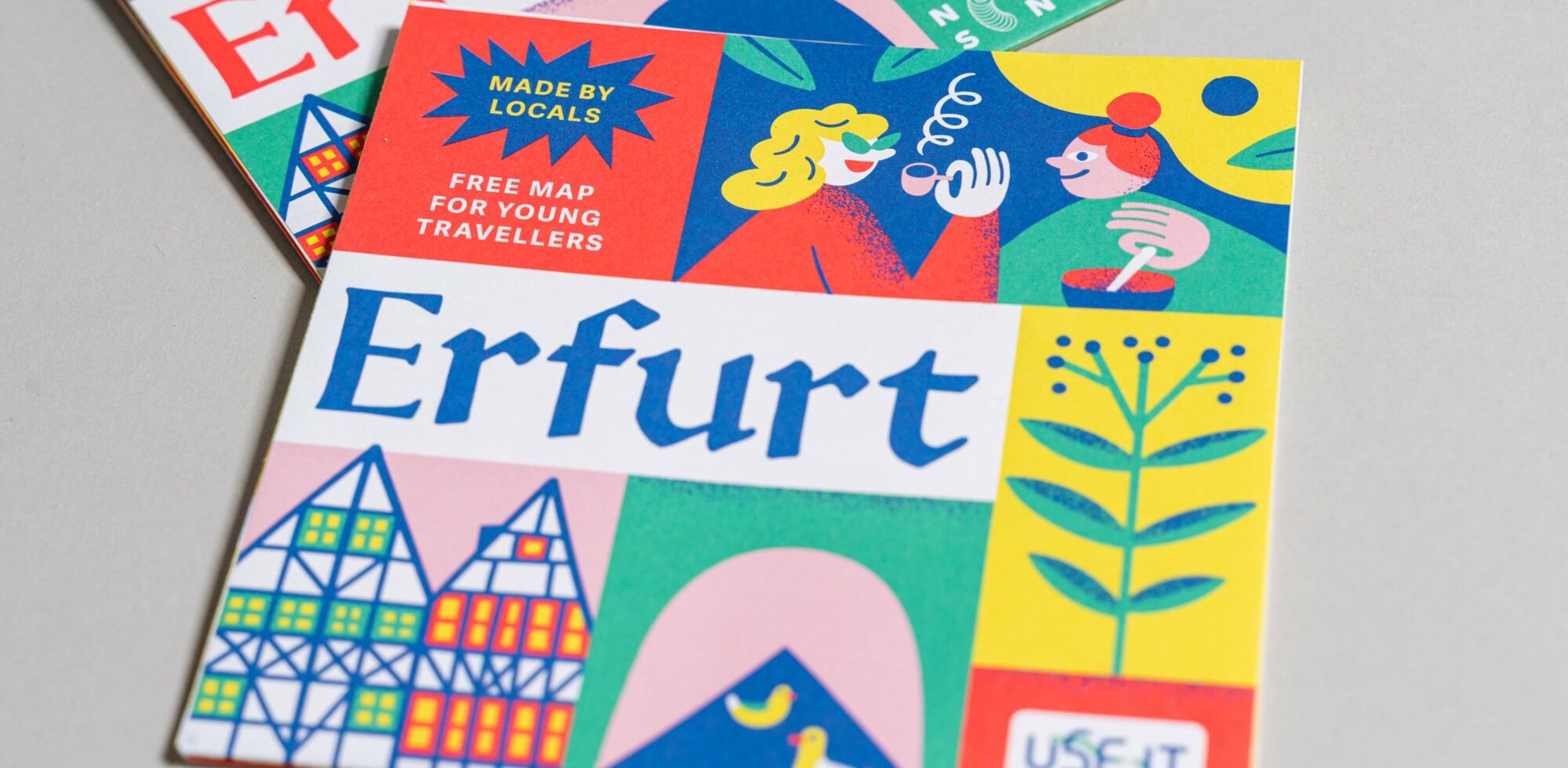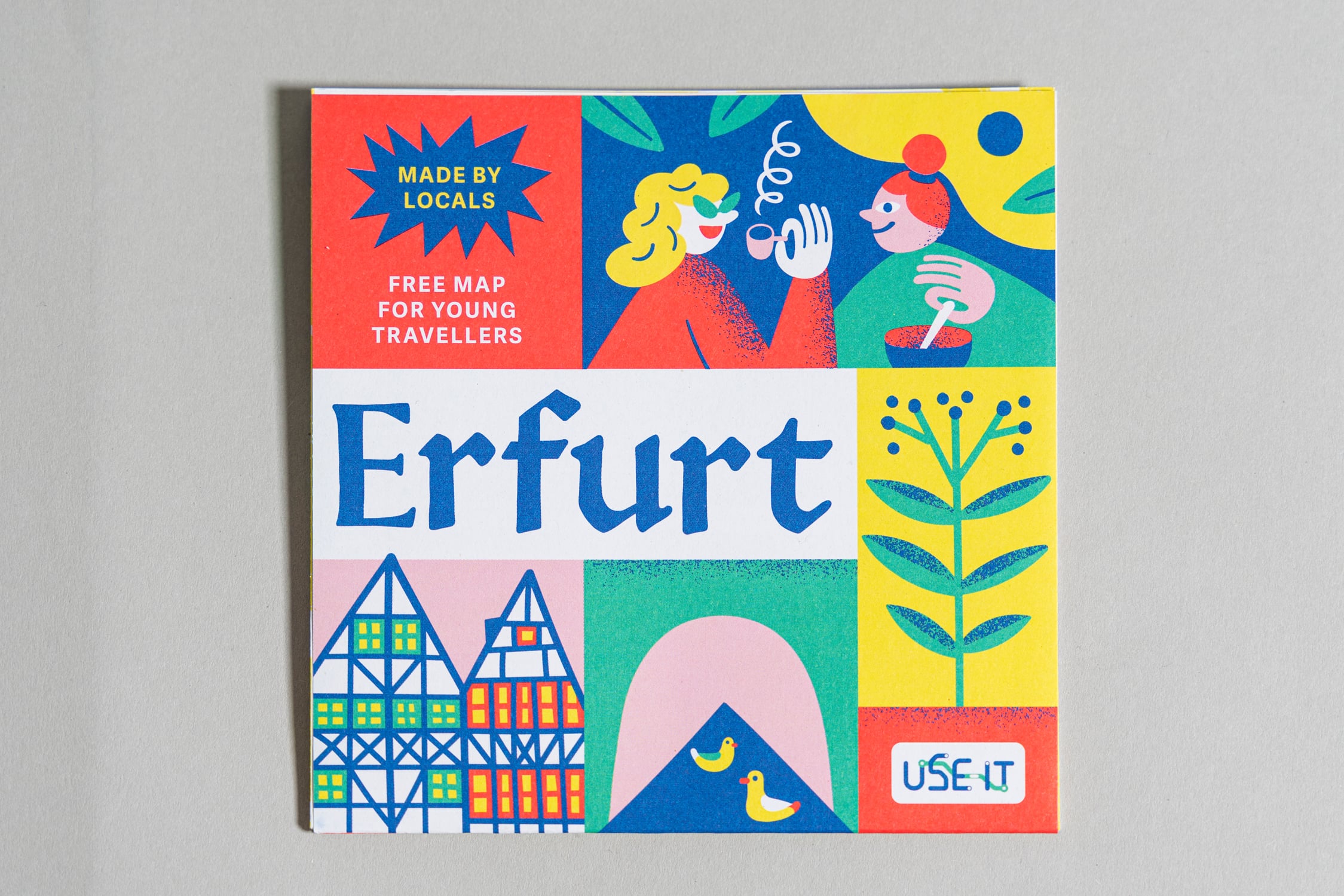 90 Geschäfte, Restaurants und Kneipen sowie Kultur- und Bildungsorte mit Qualitätsgarantie sind in diesem Plan zu entdecken. In jedem dieser Einrichtungen steckt ein Stück „Erfurter Einzigartigkeit“. Die Stadtpläne gibt es bereits in mehreren europäischen Städten. Die Ideenmacherinnen und -macher haben sich im internationalen Netzwerk „Use it“ vereint. Das gleiche Papierformat als Falzplan und eine Sprache, die bei JUNGEN REISENDEN verstanden wird, ist die gemeinsame Basis. Dazu coole Illustrationen, anstatt langweiliger Postkartenfotos und Texte.