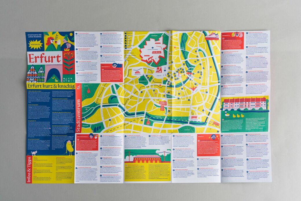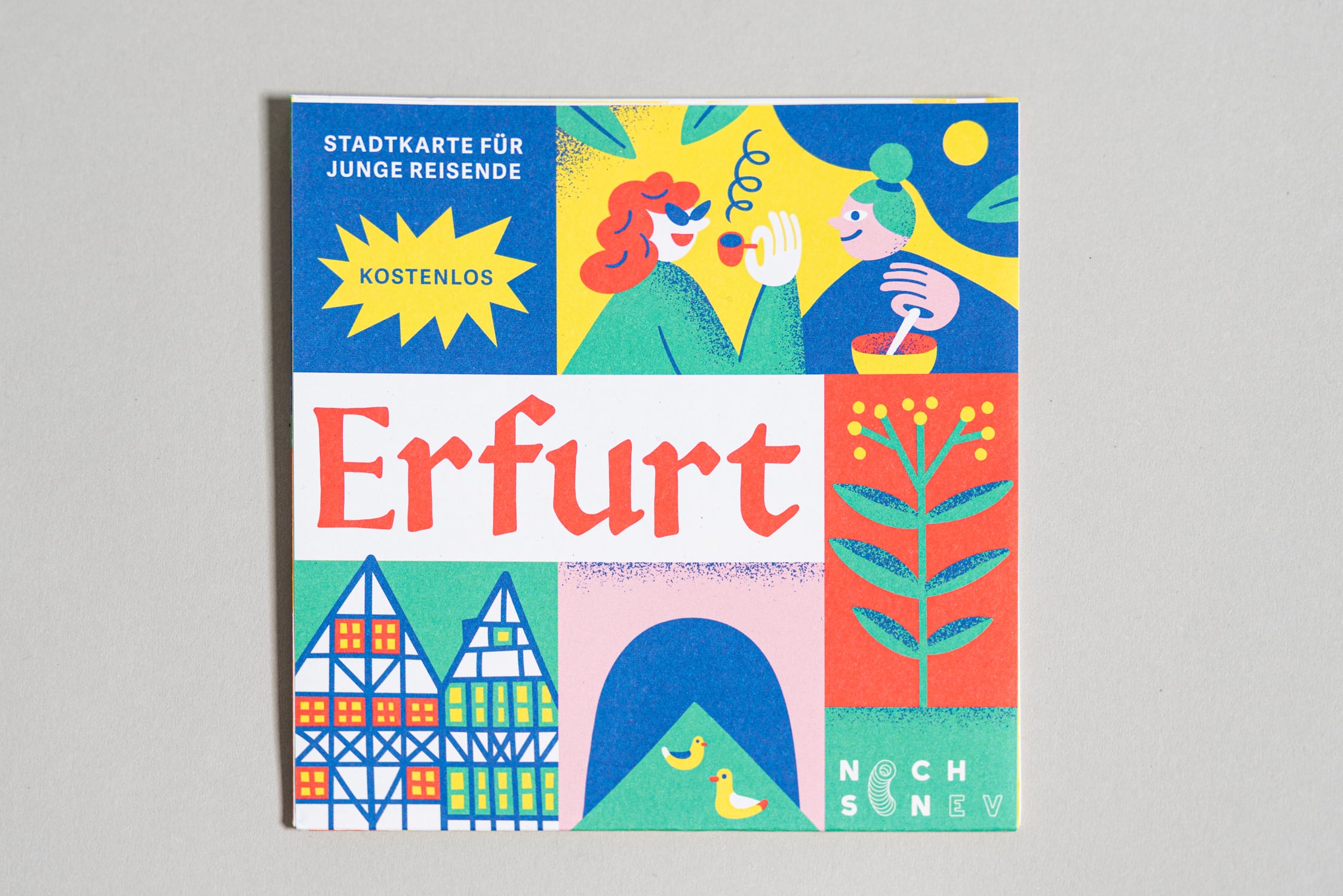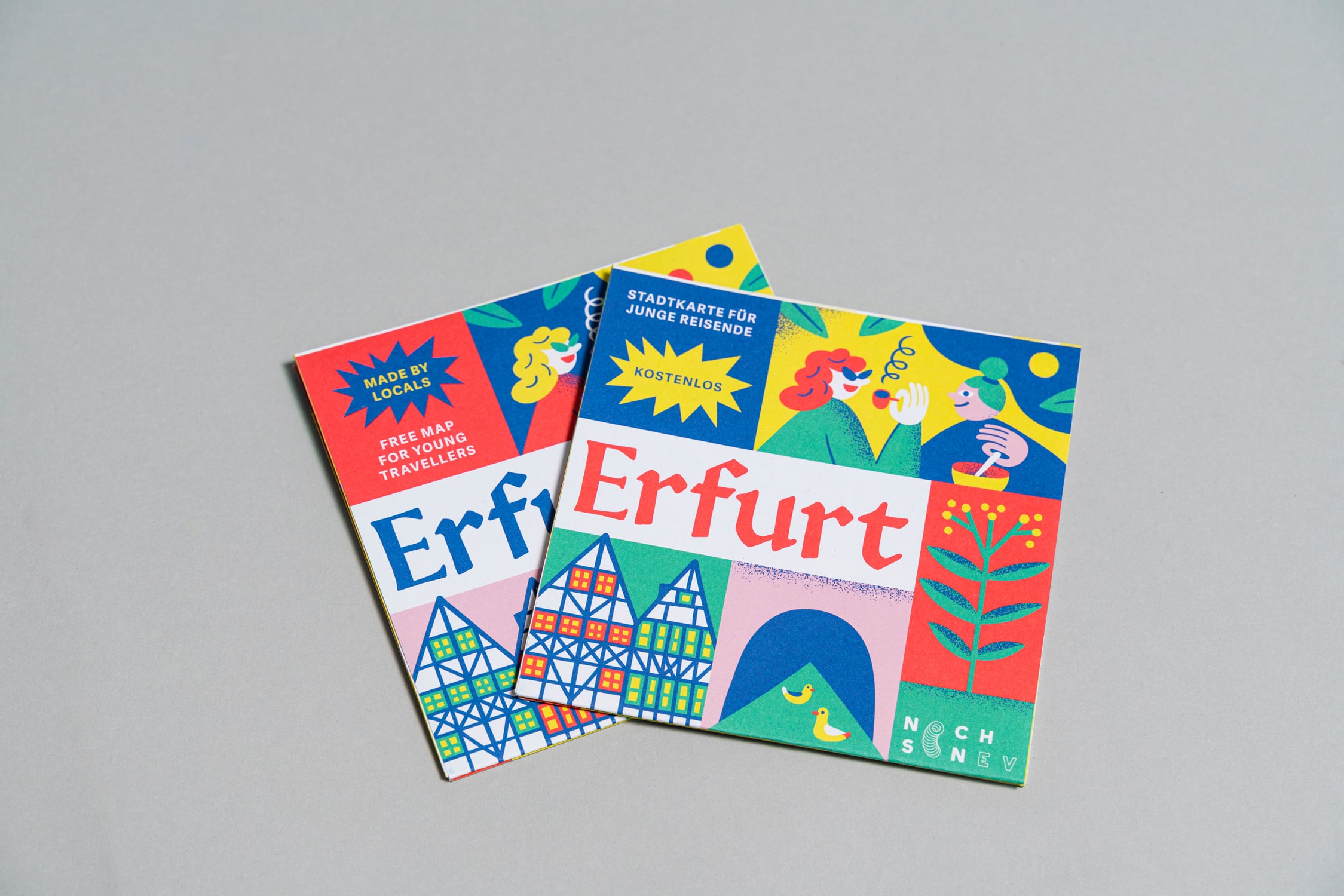 Ernestine Donnerberg von donner+friends steuerte die Illustrationen für den Erfurt-Stadtplan bei. Doch bis die Idee realisiert werden konnte, war es ein langer Weg. Gemeinsam mit dem „Nochson-Verein“ konnte das Projekt letztendlich in Recherche und Redaktion umgesetzt werden.